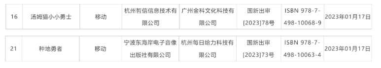 1月17日,国家新闻出版署公布了2023年1月国产网络游戏版号过审名单,共88款游戏获得版号,公司旗下汤姆猫家族IP游戏产品《汤姆猫小小勇士》、新IP创意新作《种地勇者》均位列其中。多款游戏版号的获批也预示着公司将在新的一年不断完善产品矩阵,持续释放产品力,以巩固公司在全球移动游戏市场的领先地位。